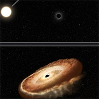 Dưới lực hút khủng khiếp từ hố đen, ngôi sao đã trải qua quá trình “mì ống hóa” bị kéo dãn và xé toạc ra trước khi bị nuốt chửng.